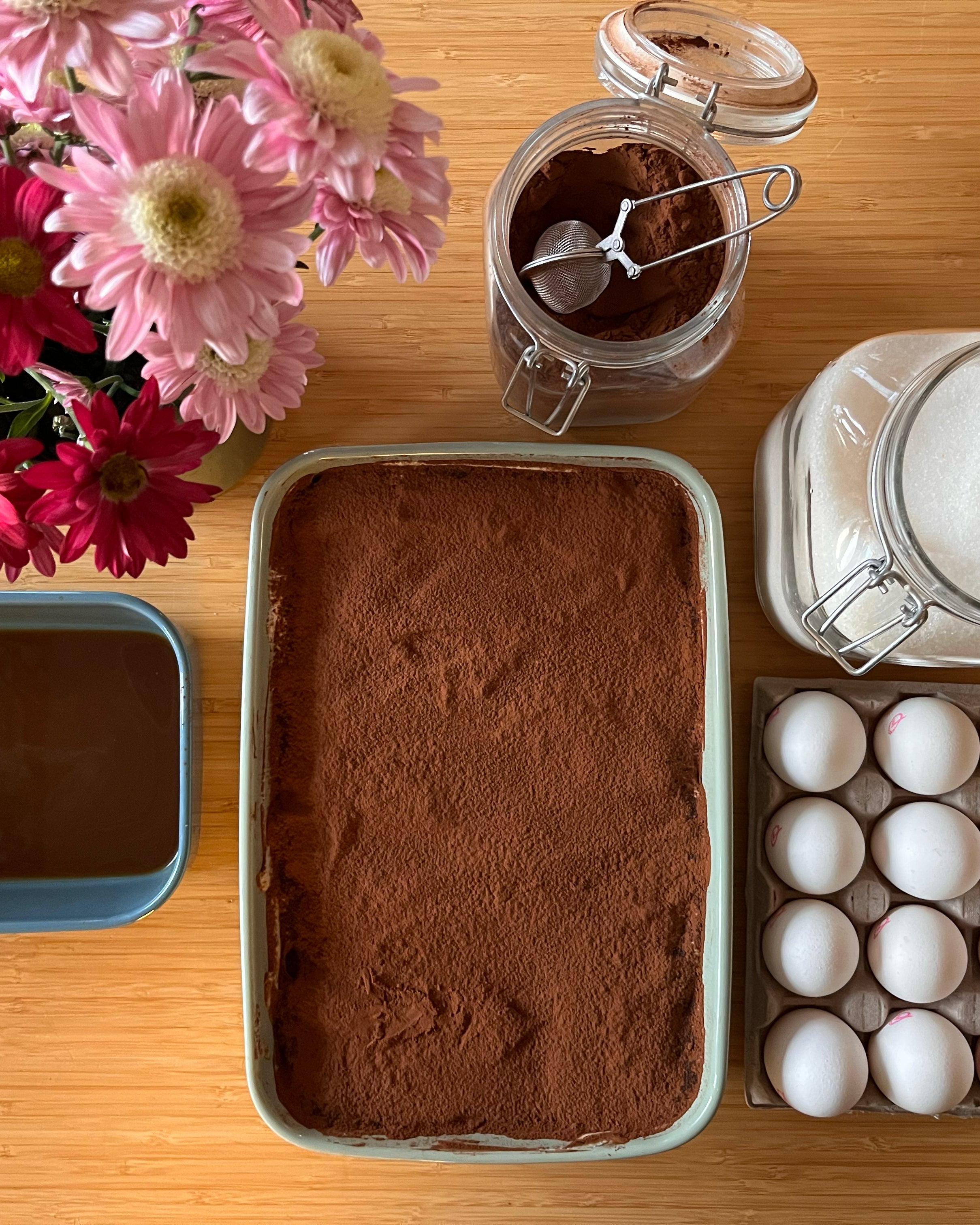 I only use fresh, high-quality ingredients — excellent mascarpone, Swedish eggs, espresso coffee, and top-notch savoiardi. I do not work with any artificial colouring, any artificial flavours or preservatives.